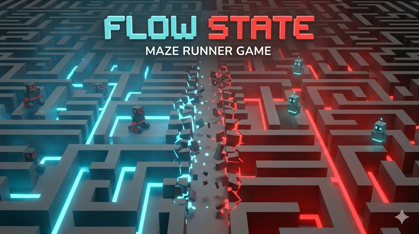 Flow State is a fast-paced first-person maze runner where reality is not fixed. You are trapped inside a procedurally generated labyrinth that exists in two overlapping dimensions. Survival depends on your ability to shift between them.